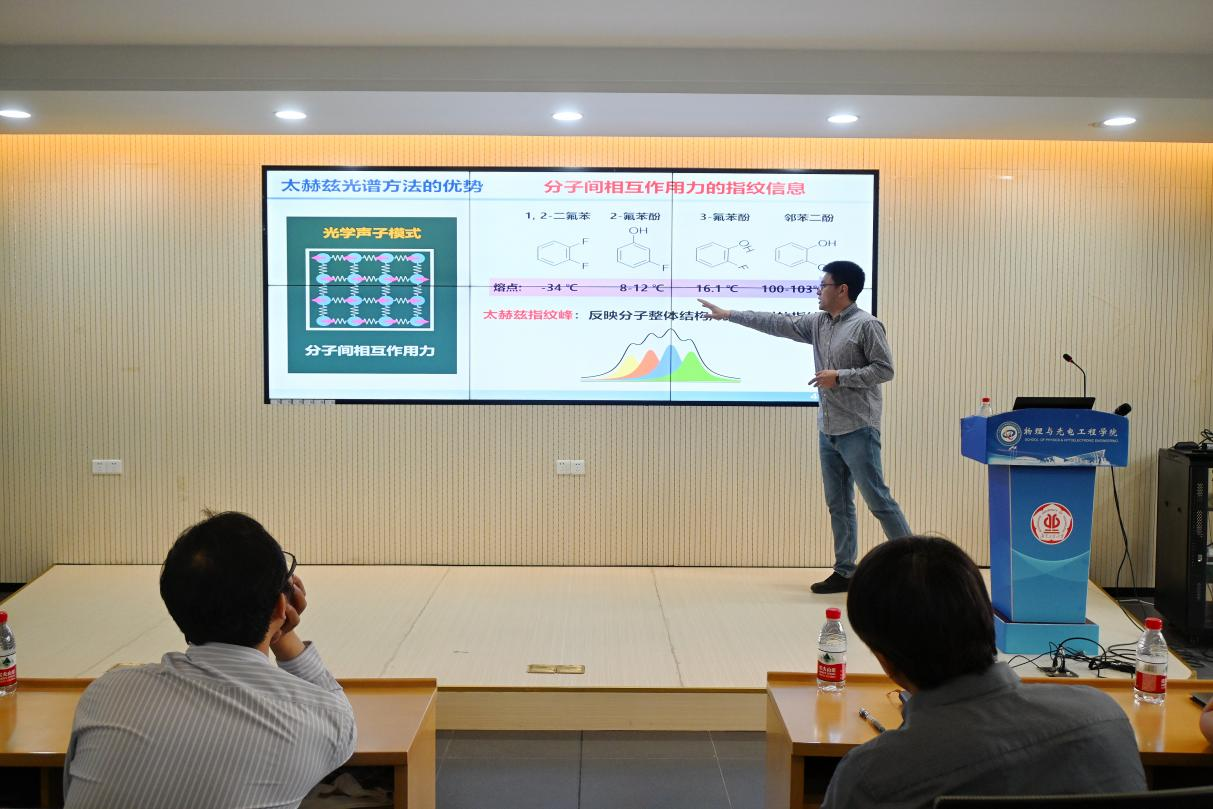 讲座中,张峰研究员从太赫兹光谱在物质结构分析的核心应用切入,先细致讲解了该技术在高分子与超分子材料氢原子解析、功能材料氟和羟基识别、磁光晶体氧空位分析中的关键作用,为师生搭建起清晰的太赫兹技术基础认知框架。立足学科前沿,张峰研究员创新性提出建立“太赫兹结晶学”的构想,并分享团队在该领域的初步成果,重点介绍了高性能太赫兹光源、吸波材料的研发进展,让大家直观了解技术前沿动态。报告尾声,他还深入剖析太赫兹非线性光学晶体构效关系,系统阐述关键参数协同调控方案与新型晶体制备、表征方法,整场报告逻辑严密、理论扎实,充分展现了太赫兹技术在材料科学、光学工程等领域的广阔应用潜力。